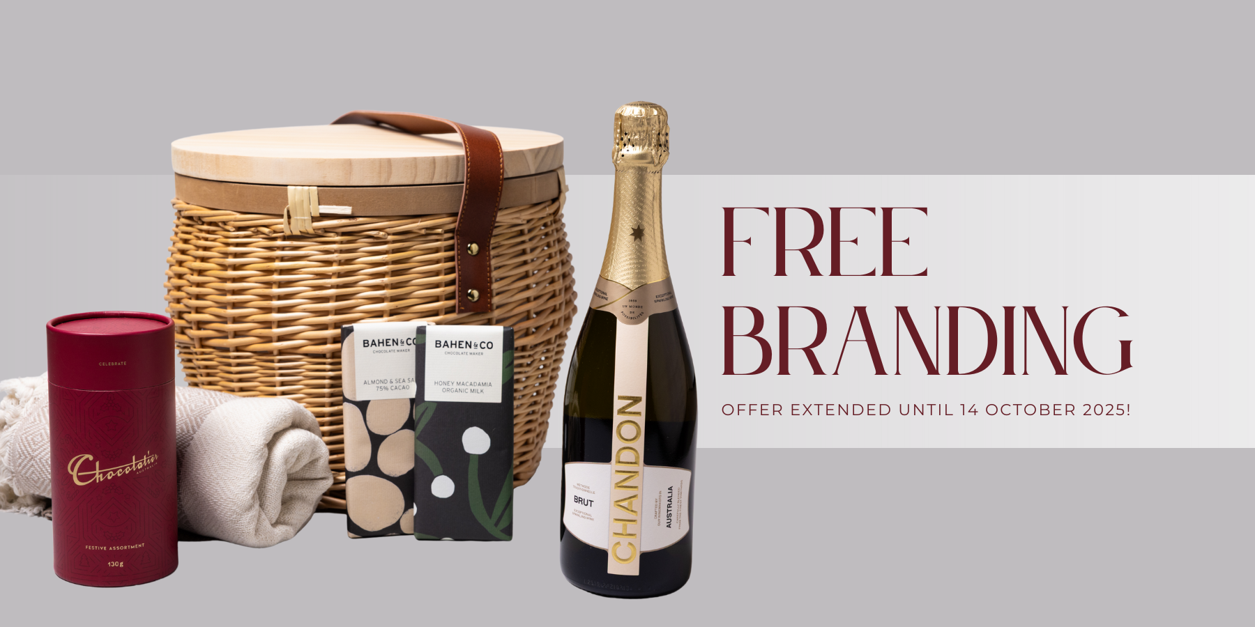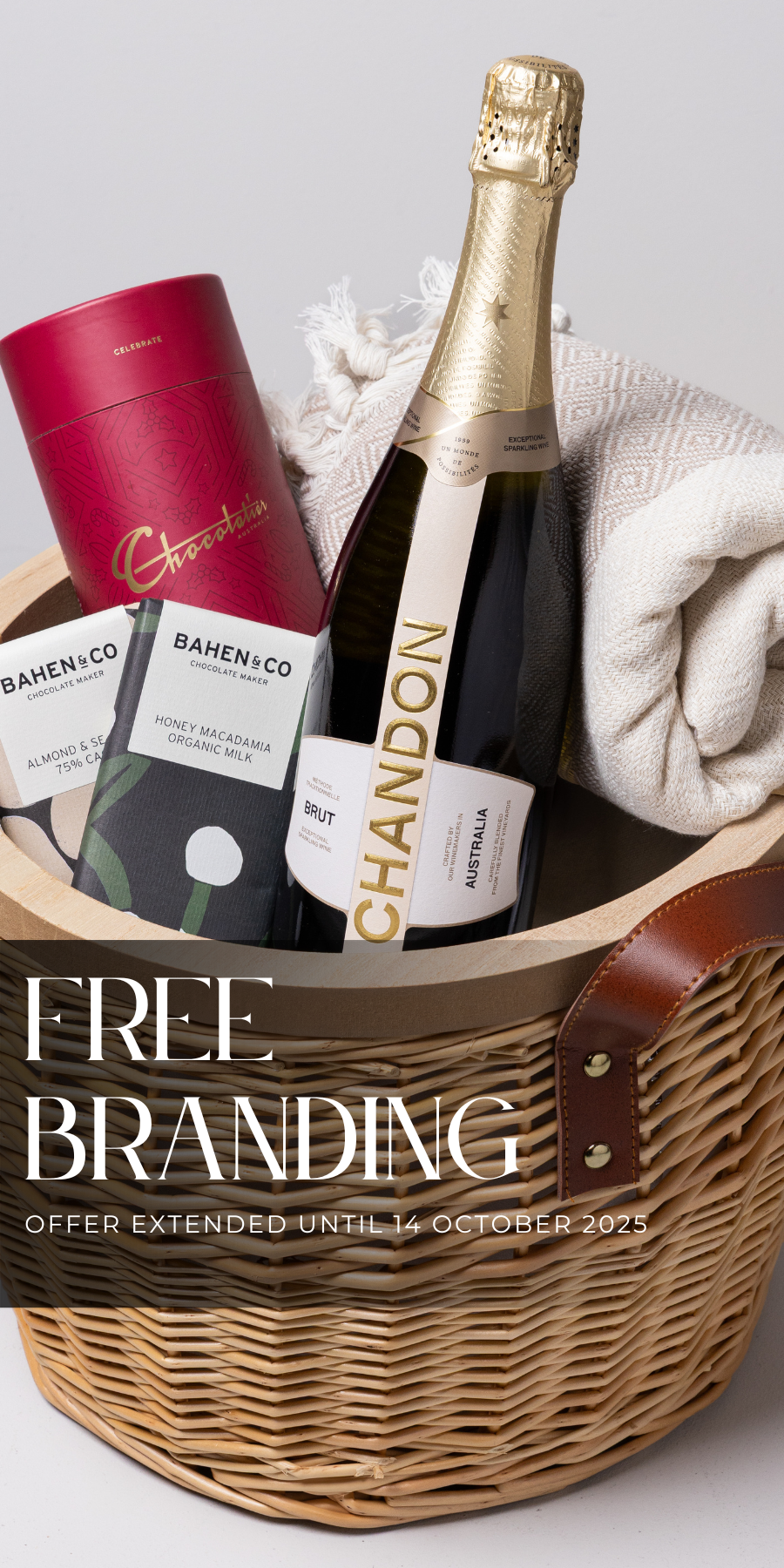 For a limited time, we’re offering complimentary logo branding on all of our gift boxes and picnic baskets. It’s the perfect way to add a personal touch, elevate your corporate gifting, and leave a lasting impression.